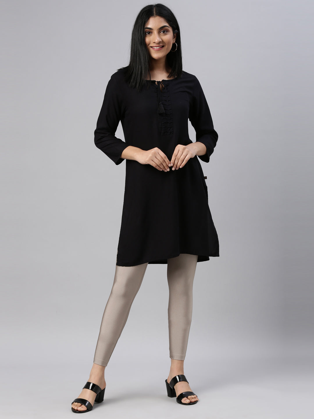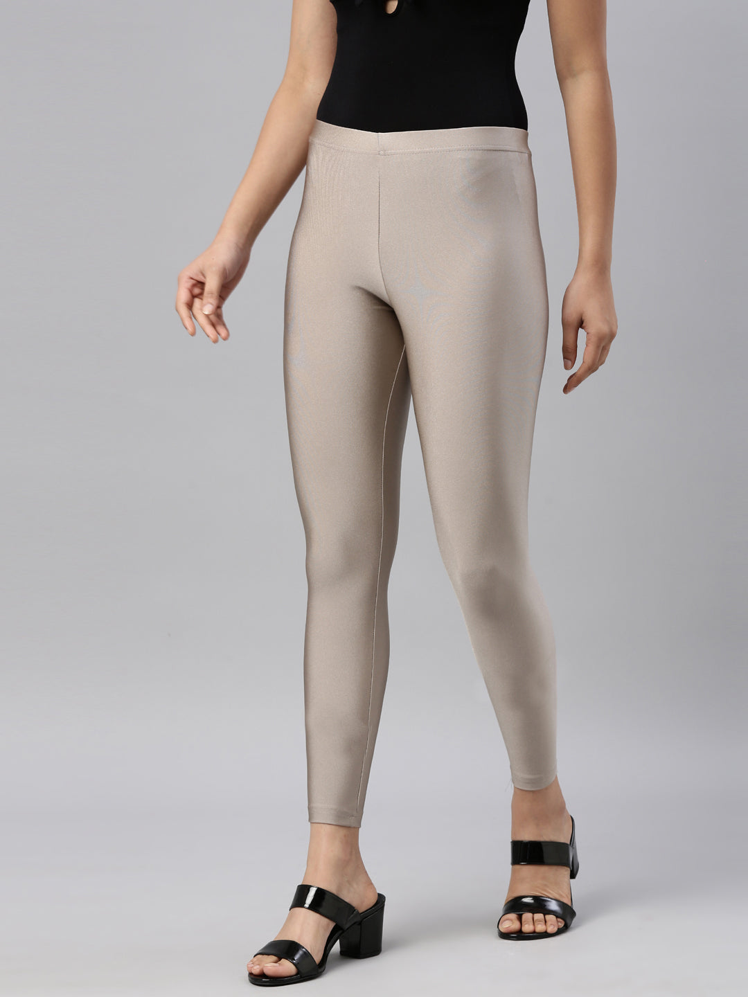 Stay comfortable yet stand out in any traditional look with Solid Copper Shimmer Leggings. Made from nylon & elastane, it has a elasticised waistband & is of slim fit & ankle length.