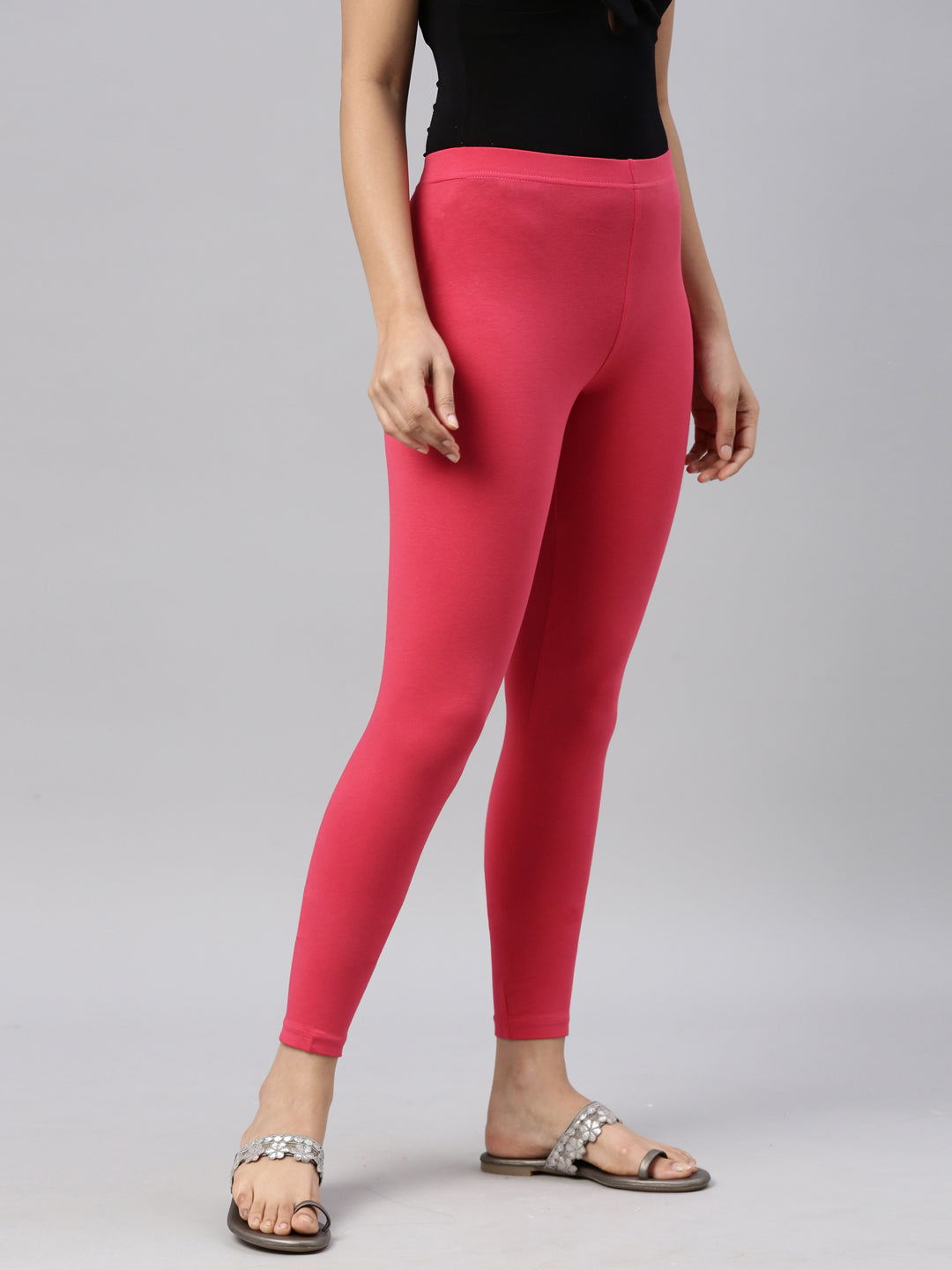 Coral Cotton Stretch Ankle Length Leggings