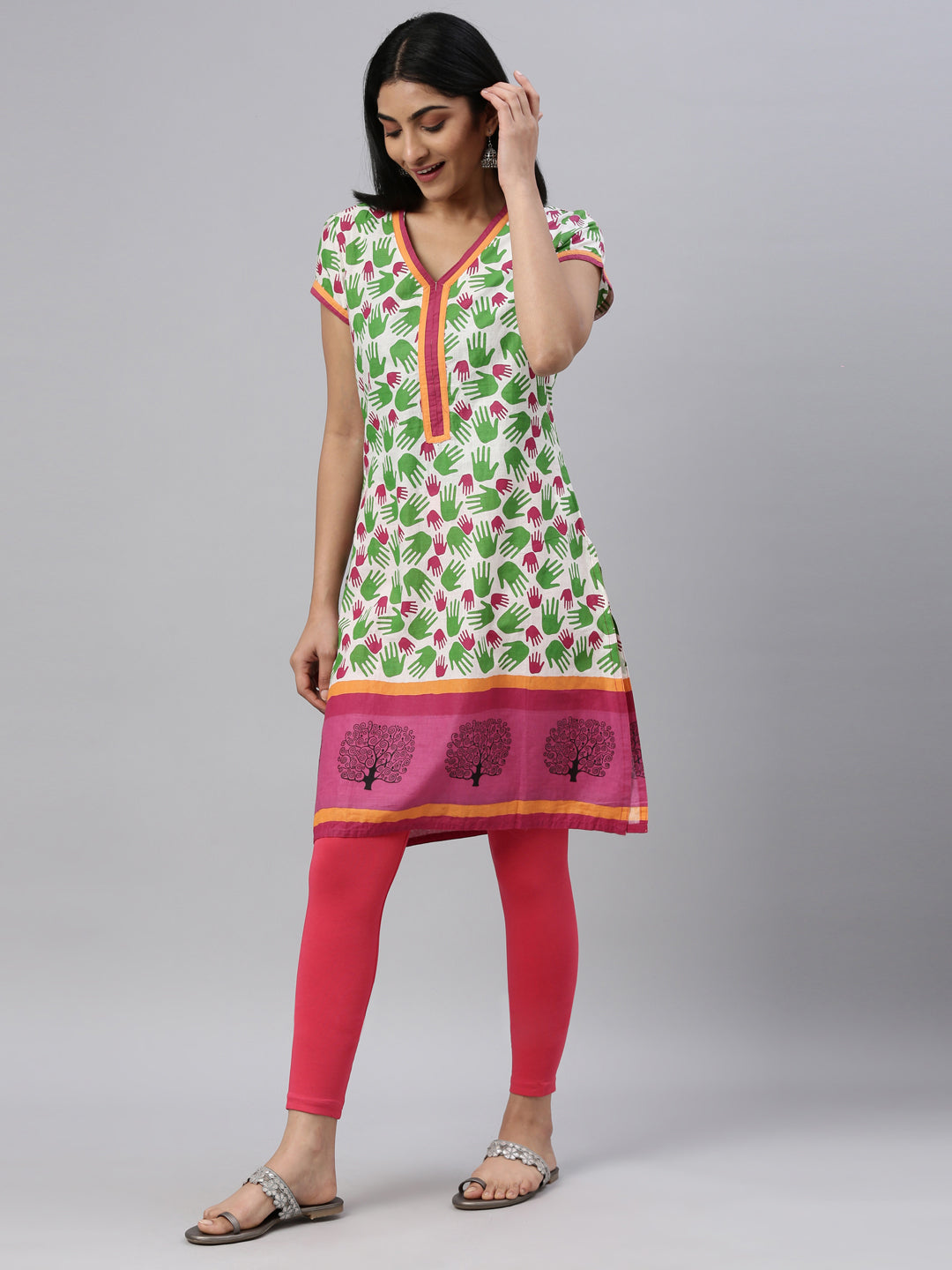Complete any look, be it traditional or western with these Solid Coral Leggings. Made from cotton & elastane, it has a elasticised waistband & has a slim fit.