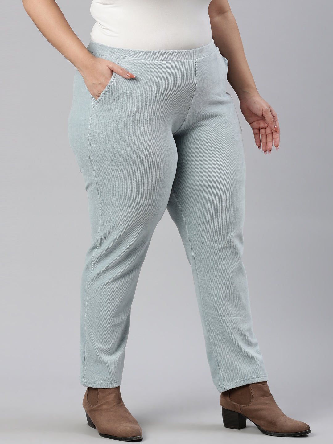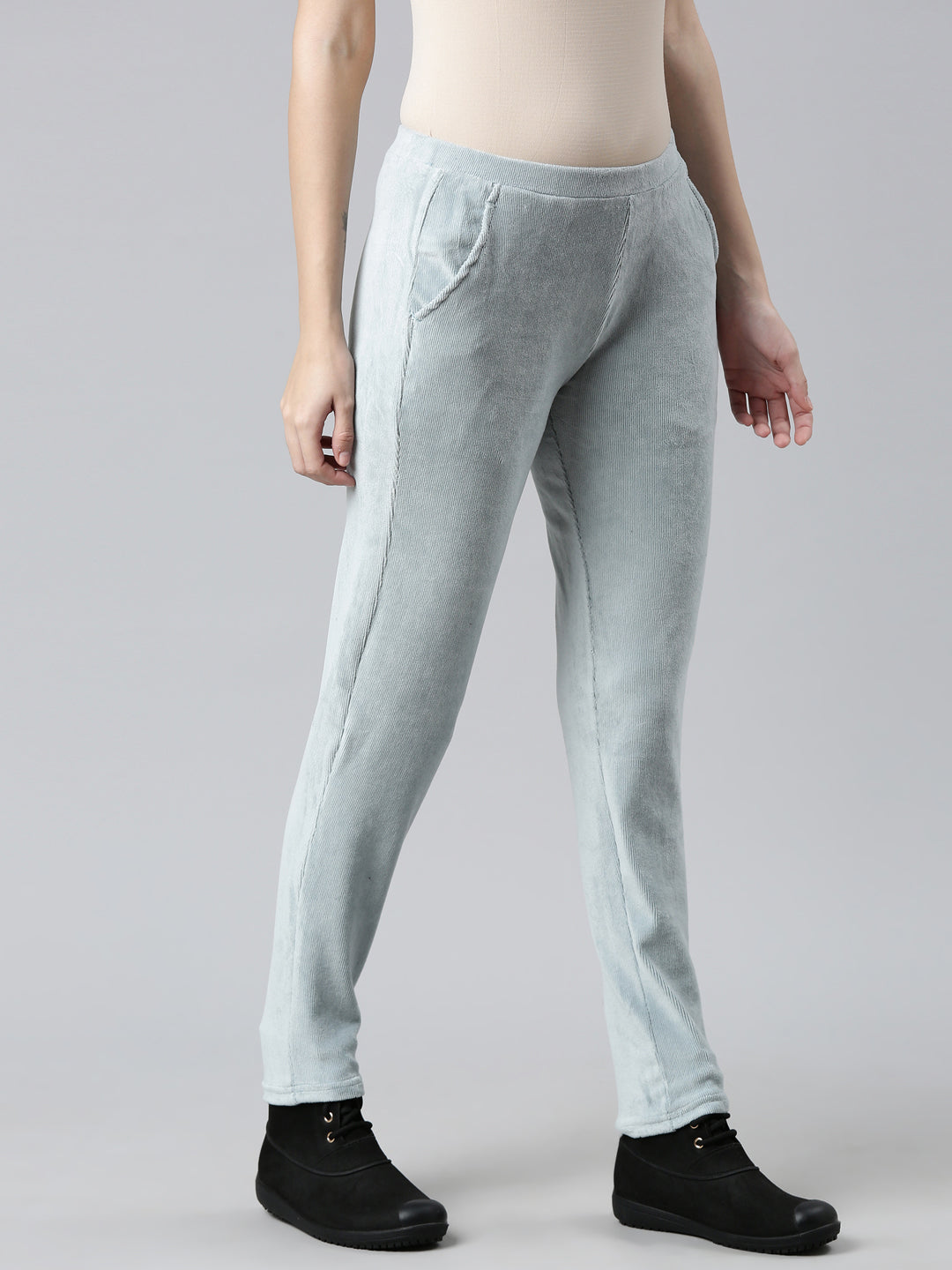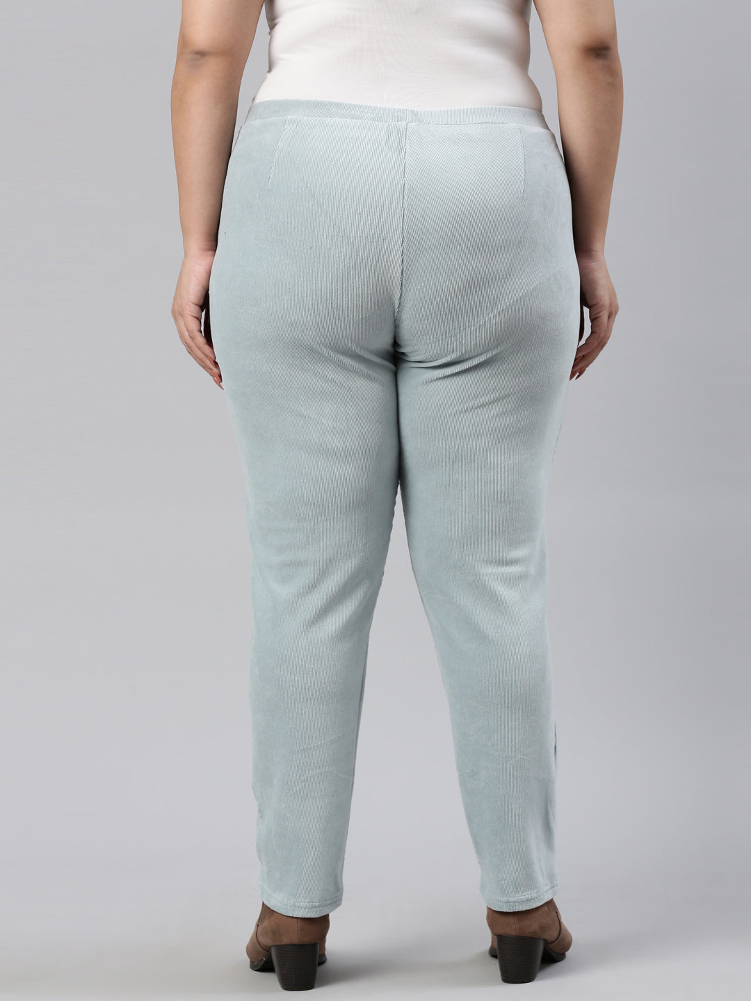 Dusty Blue Cotton Polyester Corduroy Jeggings