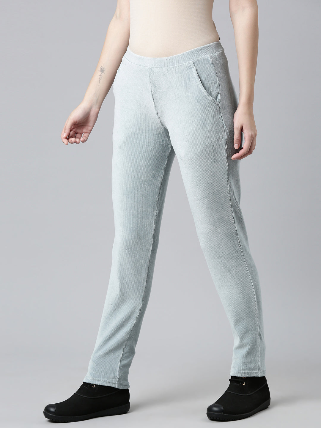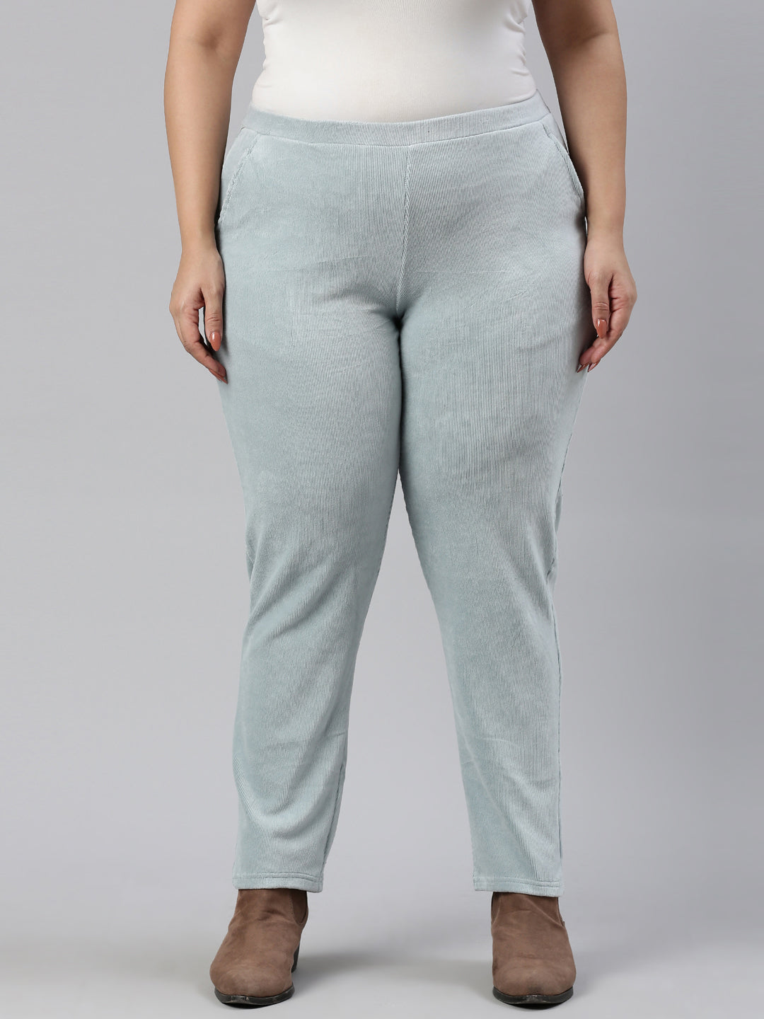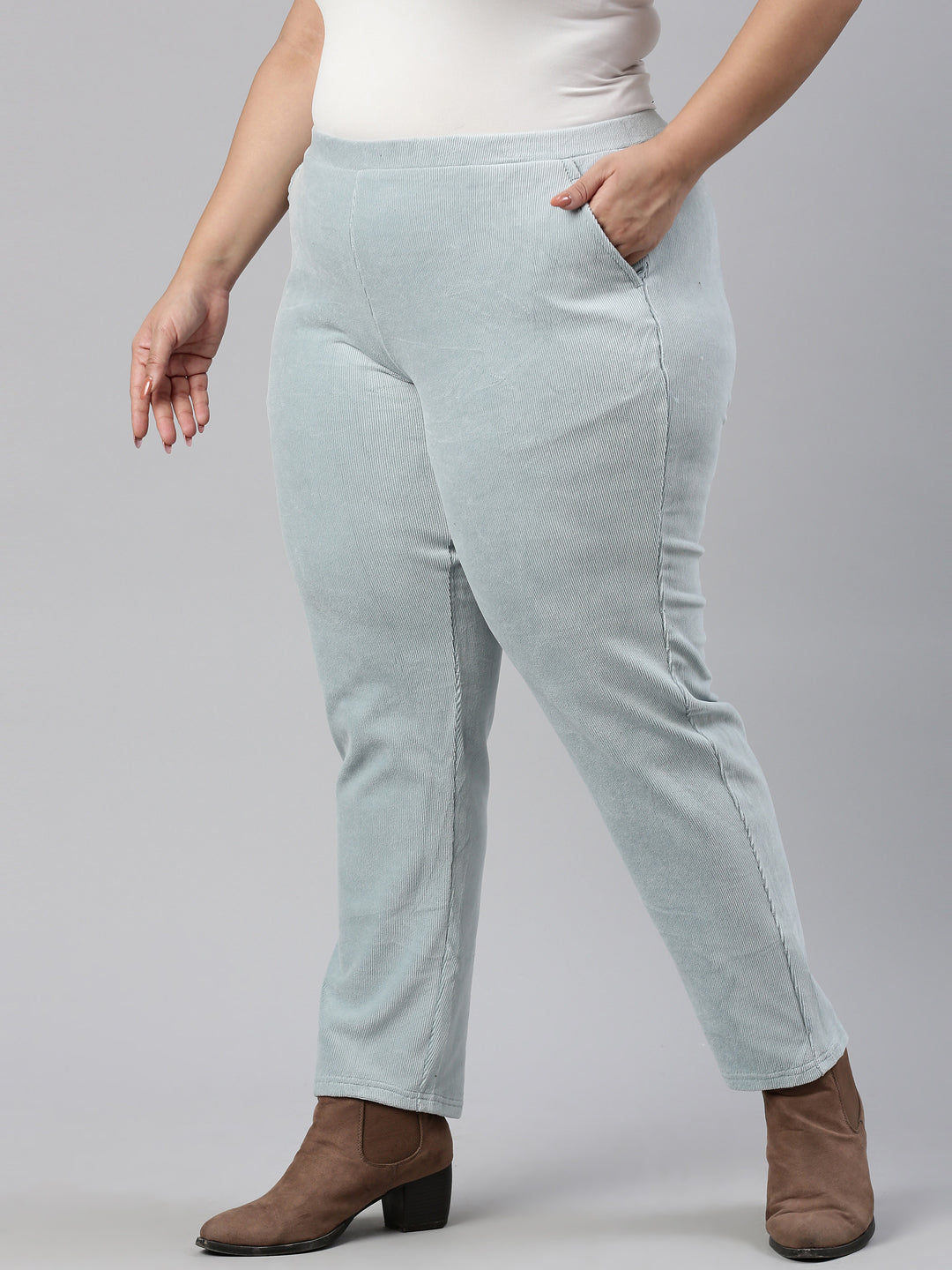 Dusty Blue Cotton Polyester Corduroy Jeggings
